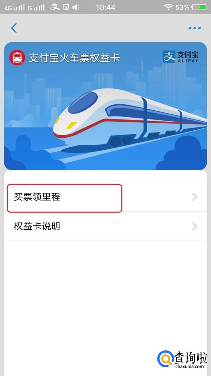 买完火车票以后,卡包里就会增加“支付宝火车票权益卡”,进入卡包的方法如步骤1图中所示,我们进入卡包以后,如图所示,点击该权益卡。