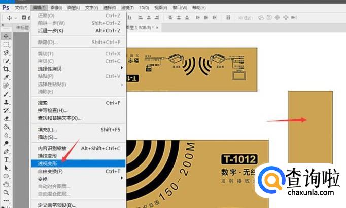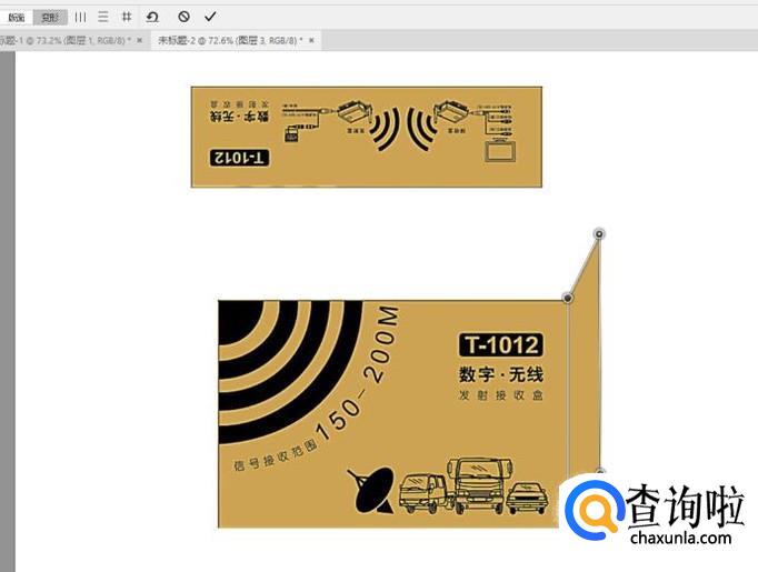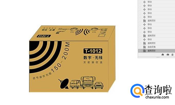 添加上视图和添加右视图类似,选中后,通过透视变形,调整到合适的位置,如下图,这样,一个包装盒就做好了