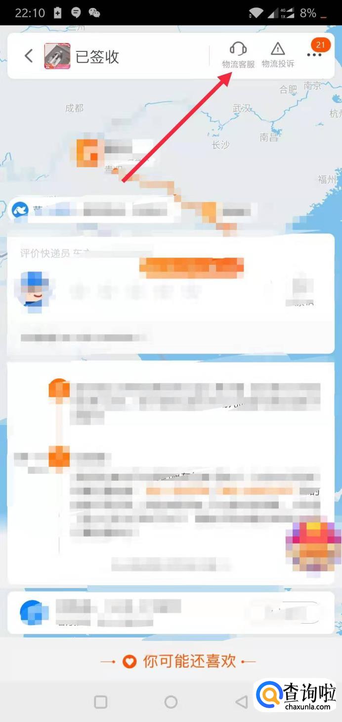 如果快递已经发货了,那卖家也不能修改地址,智能等有了物流信息了,才能联系快递公司进行修改。如下图,点击右上方的“物流客服”。
