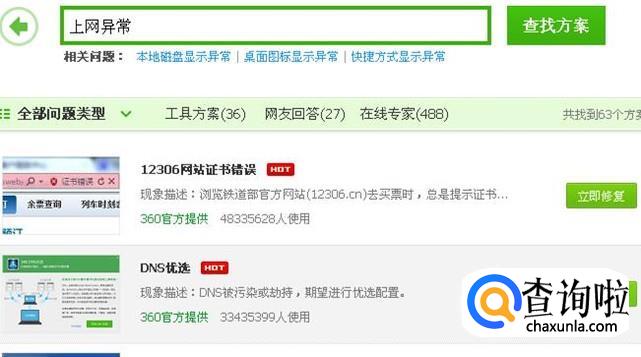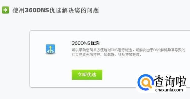 在显示的问题列表里选择“DNS优选”,点击右边的“立即修复”。
