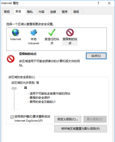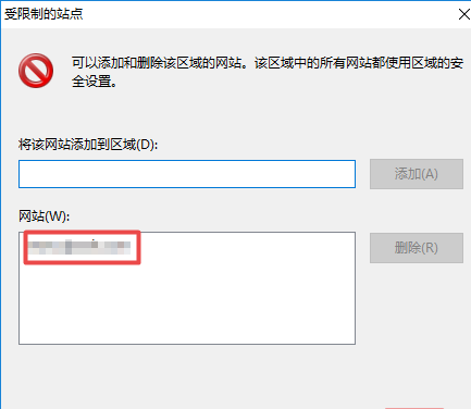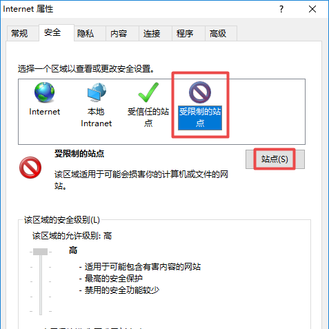 6、之后我们点击受限制的站点,然后我们点击站点;