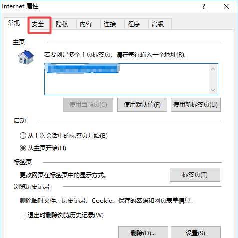 5、然后会弹出一个界面,点击安全;