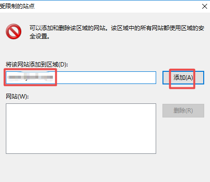 7、弹出的界面,我们输入不良网站,然后点击添加;