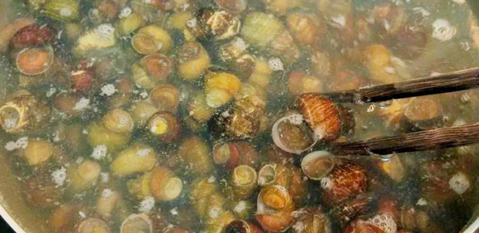 6、捞出煮好的田螺,倒入清水中冲洗就可以用来做菜了。如果你想把田螺肉挑出来做菜,可用针或牙签将肉取出,然后冲洗干净就行了。