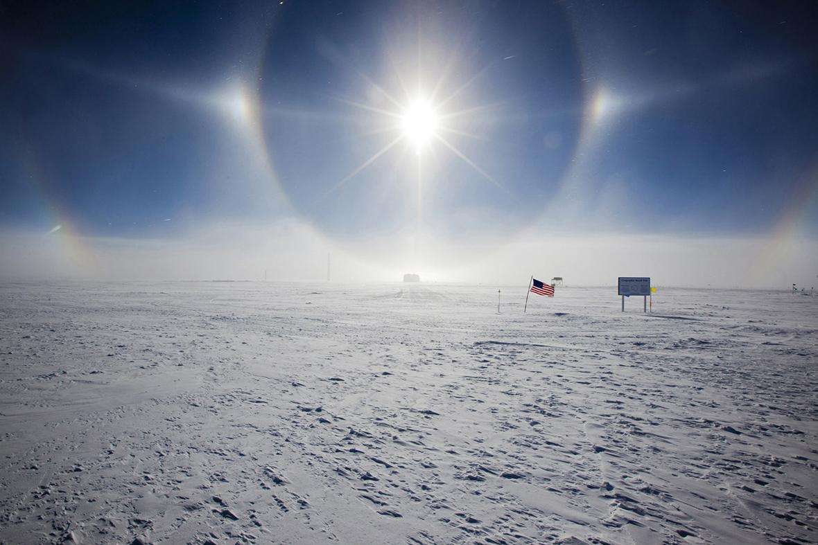 地球在沿椭圆形轨道绕太阳公转时,还绕着自身的倾斜地轴旋转。地球在绕着太阳公转时一直是“斜着身子”,因此,就会让地球赤道平面与公转轨道面之间形成一个约为23°26'的夹角,因而地球在公转时便出现有6个月时间两极之中总有一极朝着太阳,全是白天。另一个极背向太阳,全是黑夜。