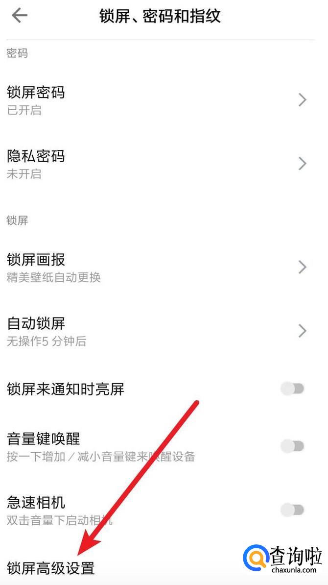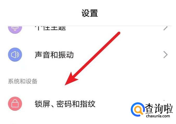 打开手机上的设置,点击里面的‘锁屏,密码和指纹’。