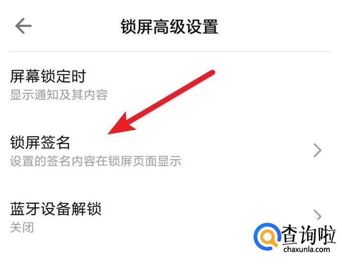 在这里可以看到有一个‘锁屏签名’的设置,点击进入。