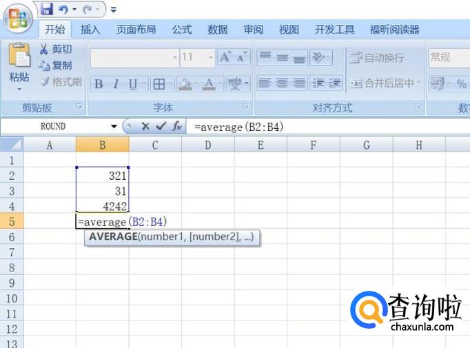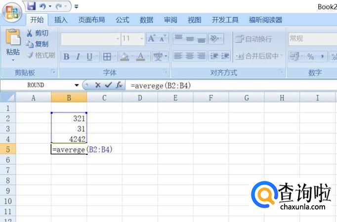 之后我们在这组数字下方的单元格中输入=averege(B2:B4),然后我们按回车键;