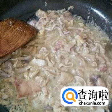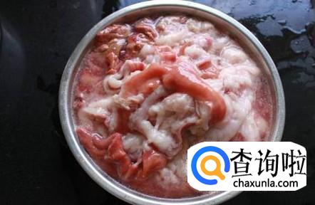 鱼肠先用清水洗净,然后放入盐和生粉反复搓洗,搓洗干净后用清水洗净,这时候鱼肠就变成粉嫩粉嫩的了。