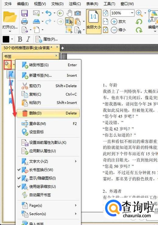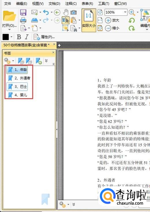 这时候在界面的右侧会出现一个书签栏,在书签栏中,我们可以看到我们刚刚添加的书签,也可以看见pdf原本存在的书签。