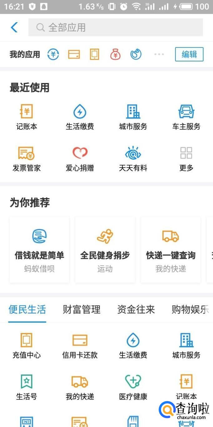 进入支付宝APP全部应用界面,在应用中选择“生活缴费”