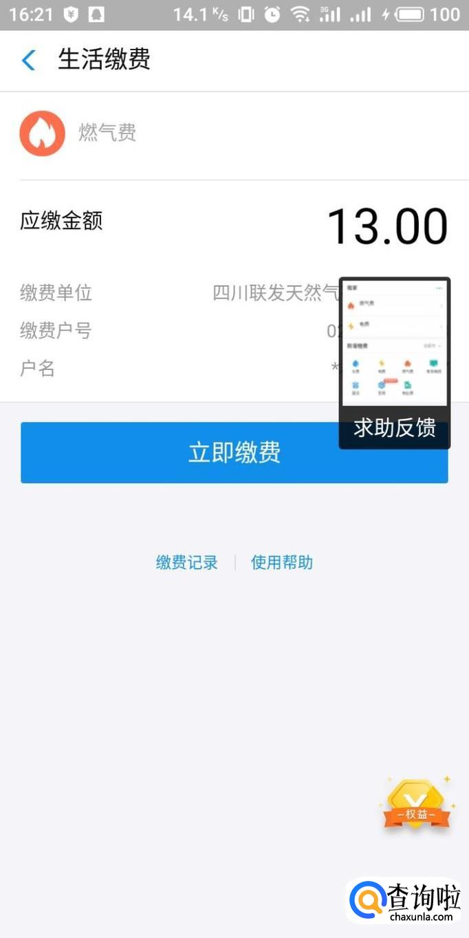 进入详情界面之后,点击“立即缴费”即可成功缴费。