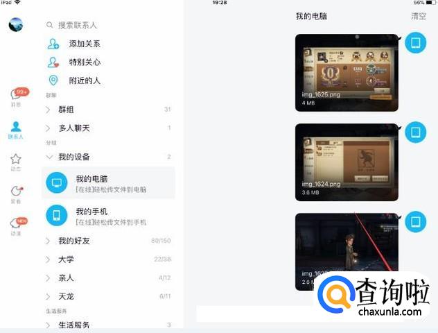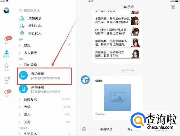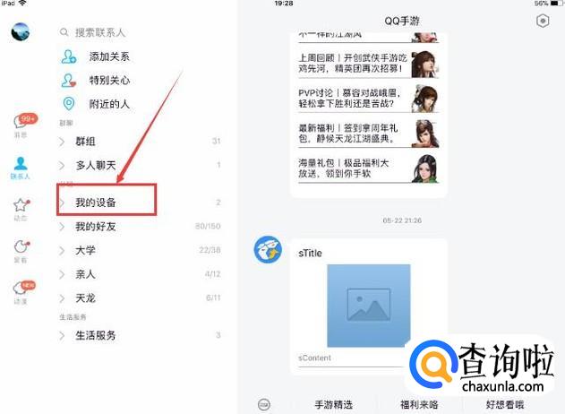 首先点击ipad中的QQ软件,之后再点击【我的设备】按键。