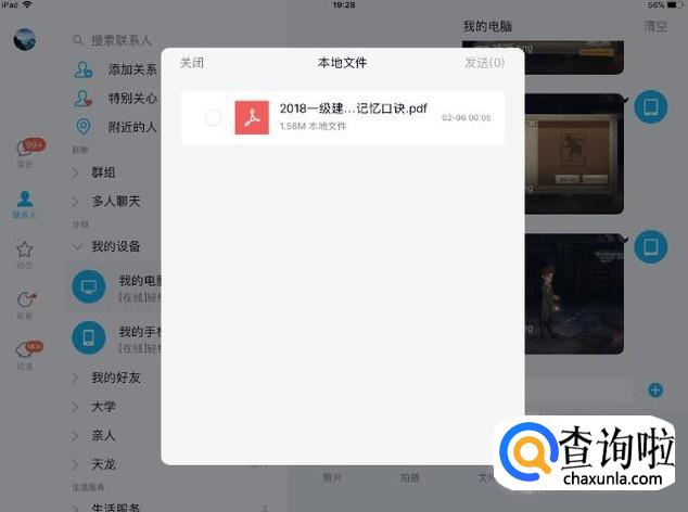 这时会弹出【本地文件】对话框,在这里我们就能看到ipad中QQ接收的文件都在这里。
