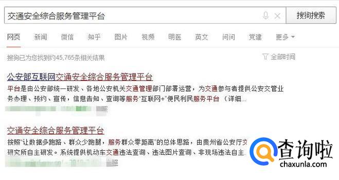 首先在搜狗浏览器中输入交通安全综合服务管理平台并点击回车键,如下图所示。