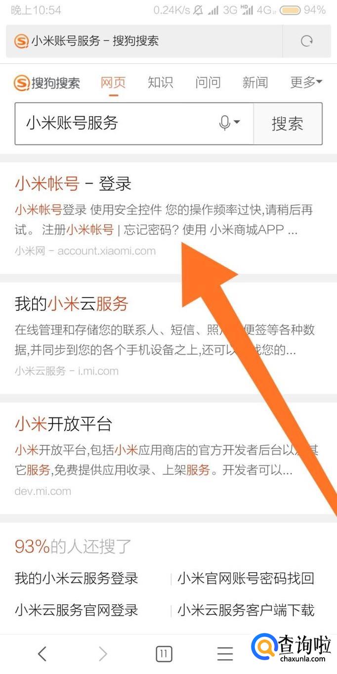 首先使用搜狗搜索“小米账号服务”,然后点击进入“account.xiaomi.com”网站。