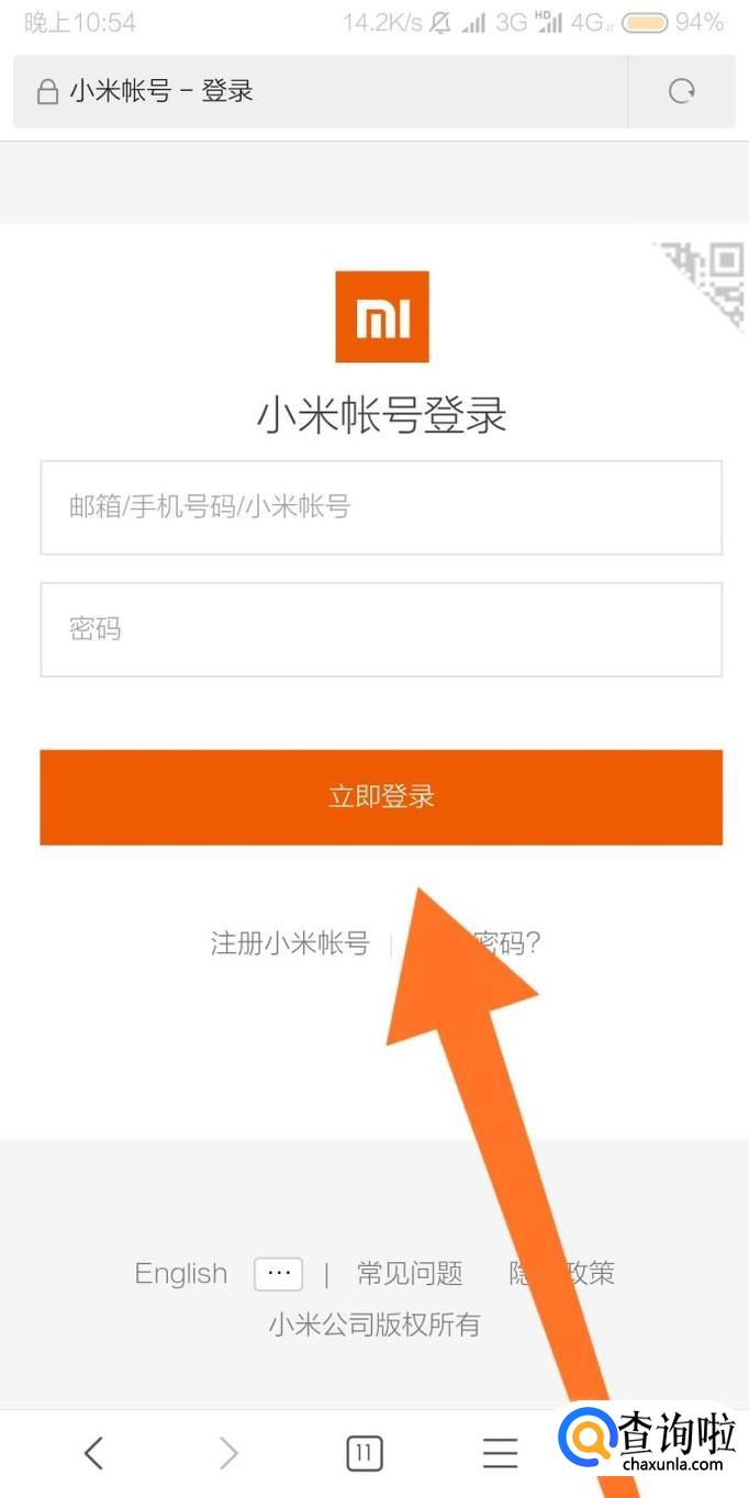 再输入自己小米的账户名称和账号密码,点击“登录”按钮。