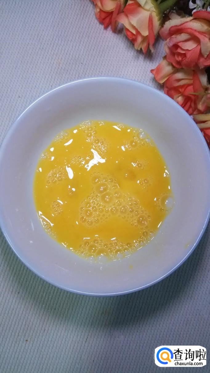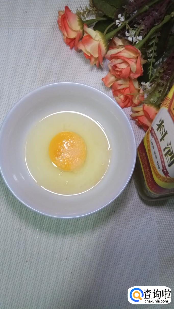 碗中打入一个鸡蛋,加入适量盐和料酒,用筷子搅拌均匀,料酒可以有效去除鸡蛋的腥气。