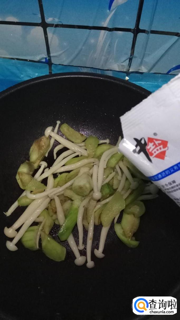 加入少许清水,防止粘锅,海鲜菇本来就有香味,所以只加盐和油,就已经很香了,不用添加其他调料,这样可以最大限度的保留食材本身的营养。炒熟后,出锅装盘就可以吃了,真的特别好吃。