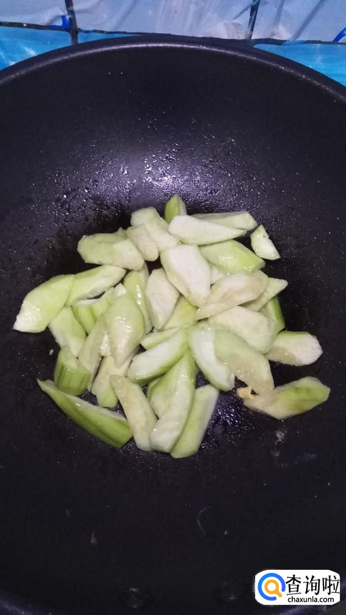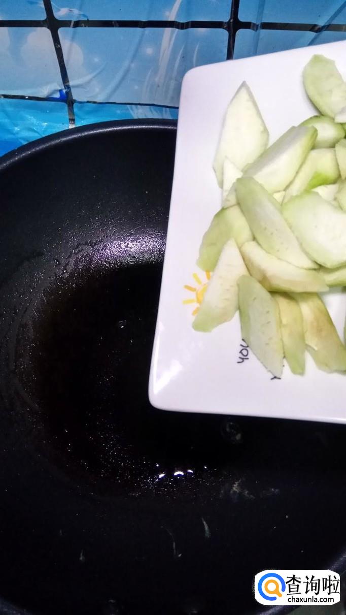 锅中烧热油,油热后将丝瓜倒入锅中,炒至变软。