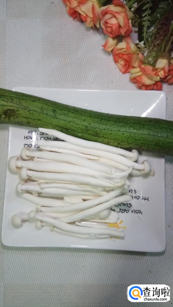 丝瓜适量,海鲜菇适量,鸡蛋适量,盐适量,料酒适量。