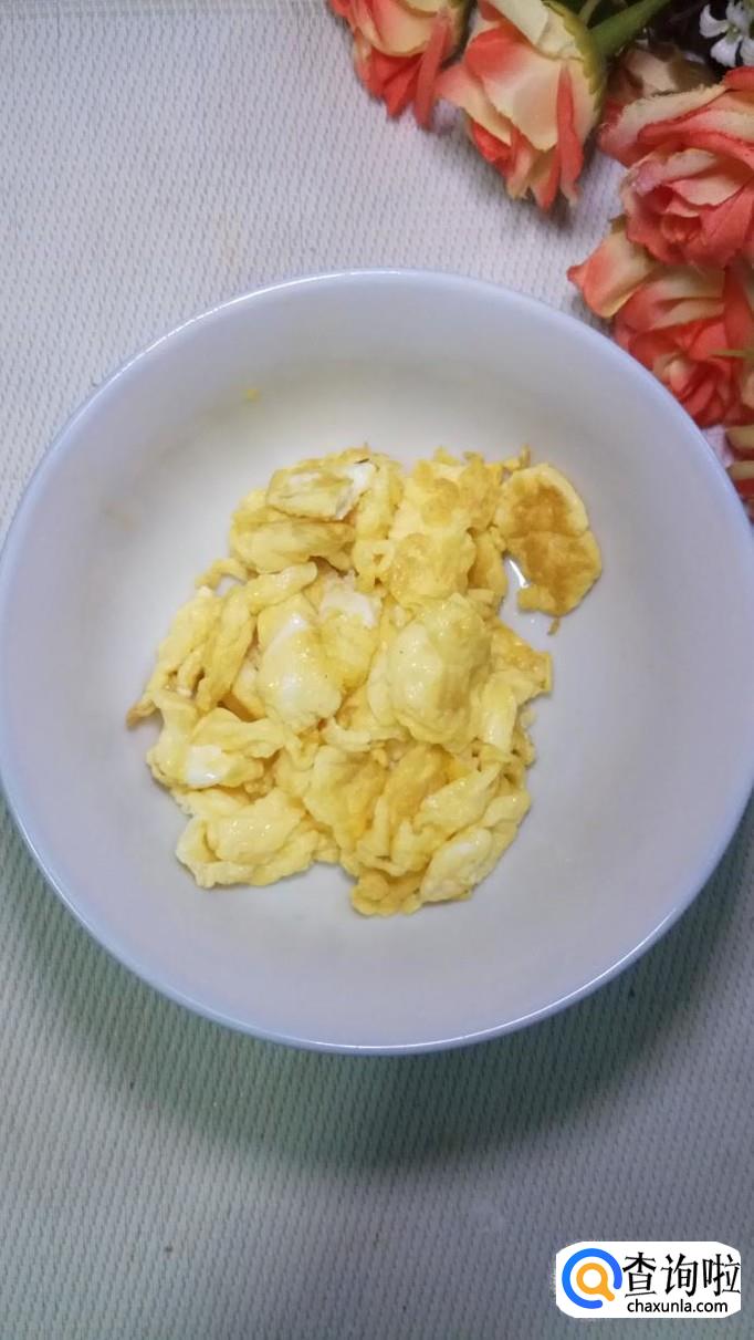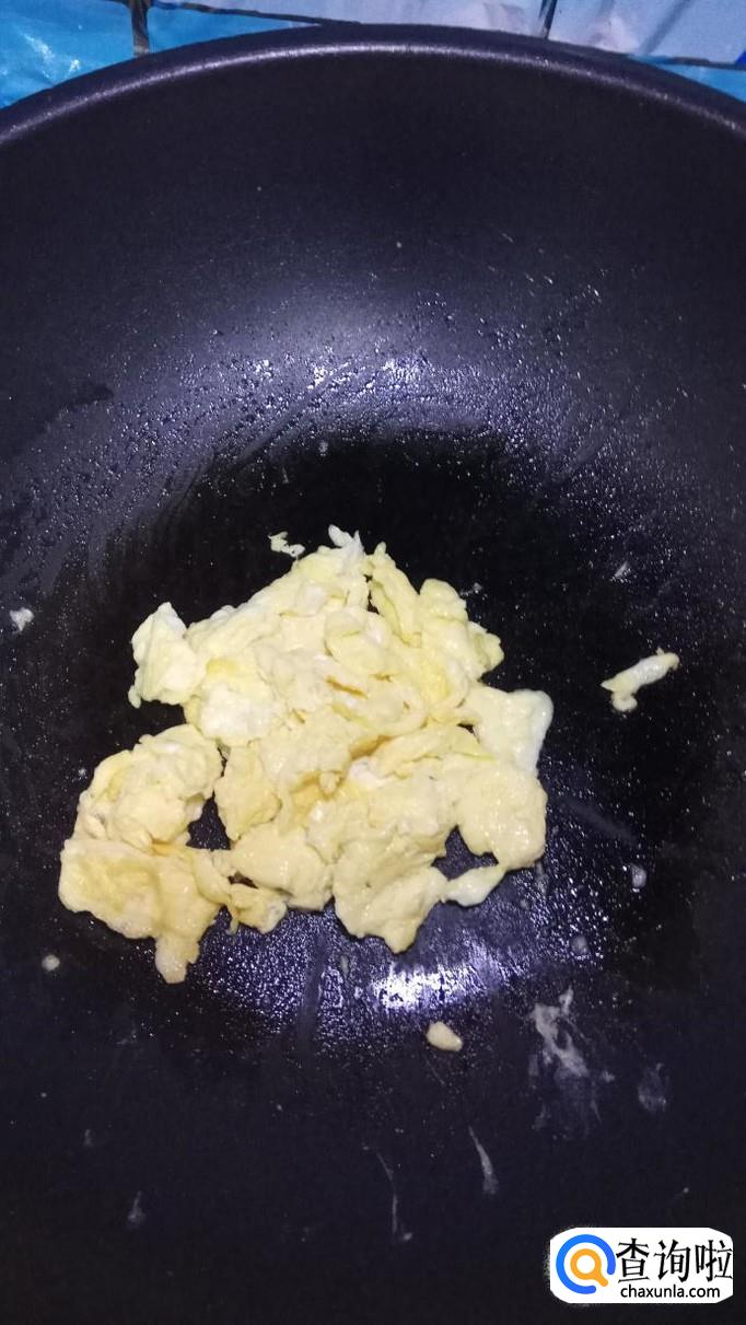 锅中放入适量油,油热后将鸡蛋放入锅中炒熟,盛出备用,注意,鸡蛋不要炒得太老,影响口感。