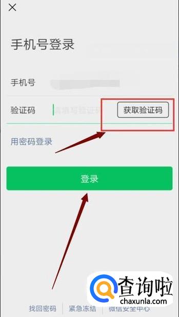 接着,我们在如图界面点击“获取验证码”,输入短信发来的验证码,点击“登陆”。