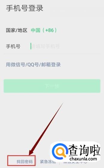 首先,我们登陆微信,在微信登陆界面点击“找回密码”,如图所示。