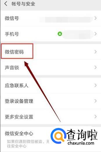 然后在“账号与安全”界面点击“微信密码”,如图所示。