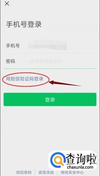 根据登陆流程,我们回到“手机号登陆”界面,点击“用短信验证码登陆”。