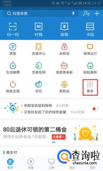 首先,我们打开我们的手机,然后点击进入支付宝,之后我们点击更多;