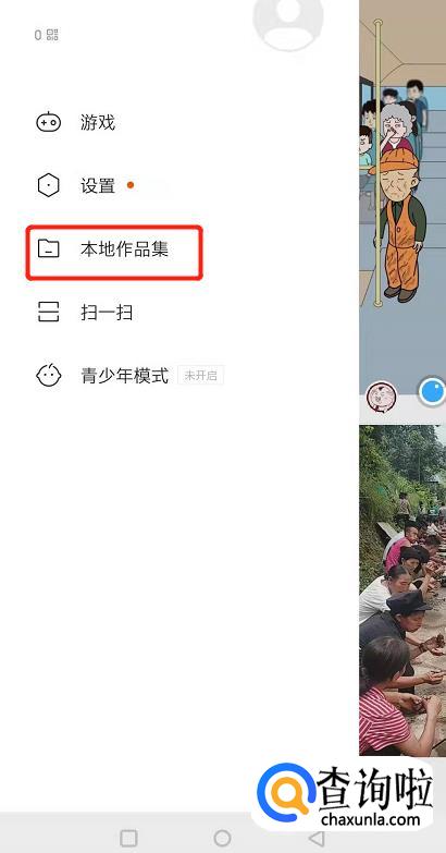 最后我们退出到手机桌面,找打快手,打开快手,然后点击左上角,找到“本地作品集”。