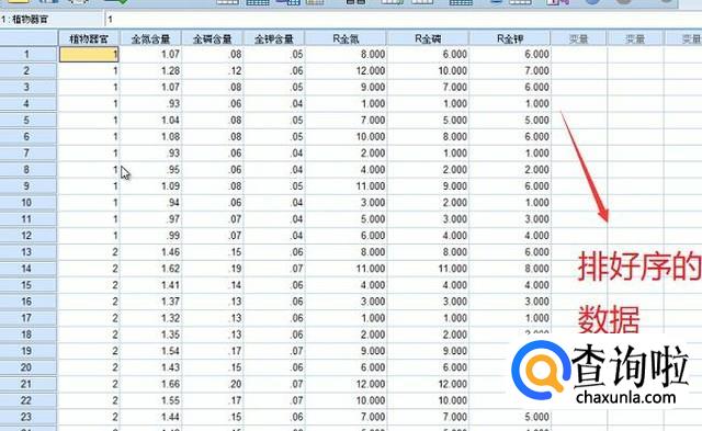 最后回到SPSS主界面我们就可以看到数据已经进行了个案等级排序了,如下图所示