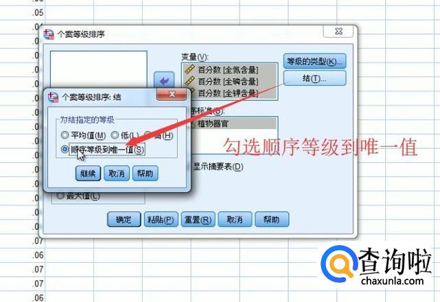 然后点击结按钮,勾选顺序等级到唯一值复选框,如下图所示