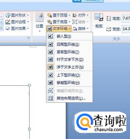鼠标移到相应选项,出现如图的列表,进行环绕方式选择