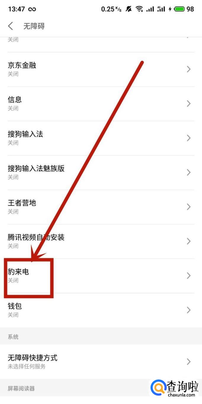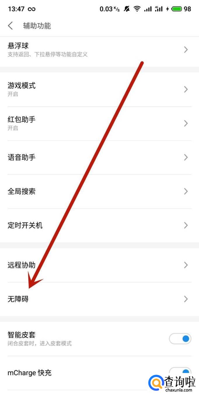 进入之后,选择“无障碍”,进入下一页面,如图所示。
