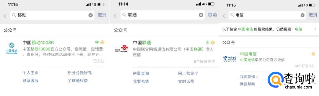 现在我们熟知的运营商三巨头都有自己的公众号和APP。关注公众号或下载APP进行绑定登录都可以查到话费余额。