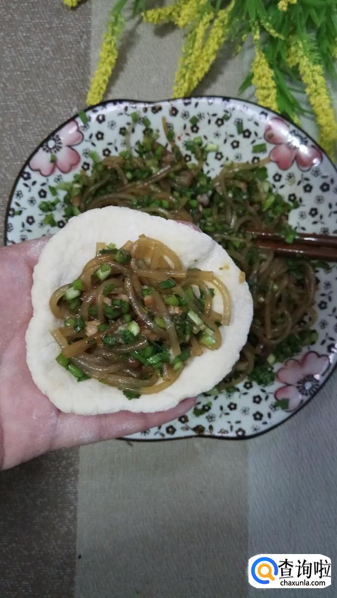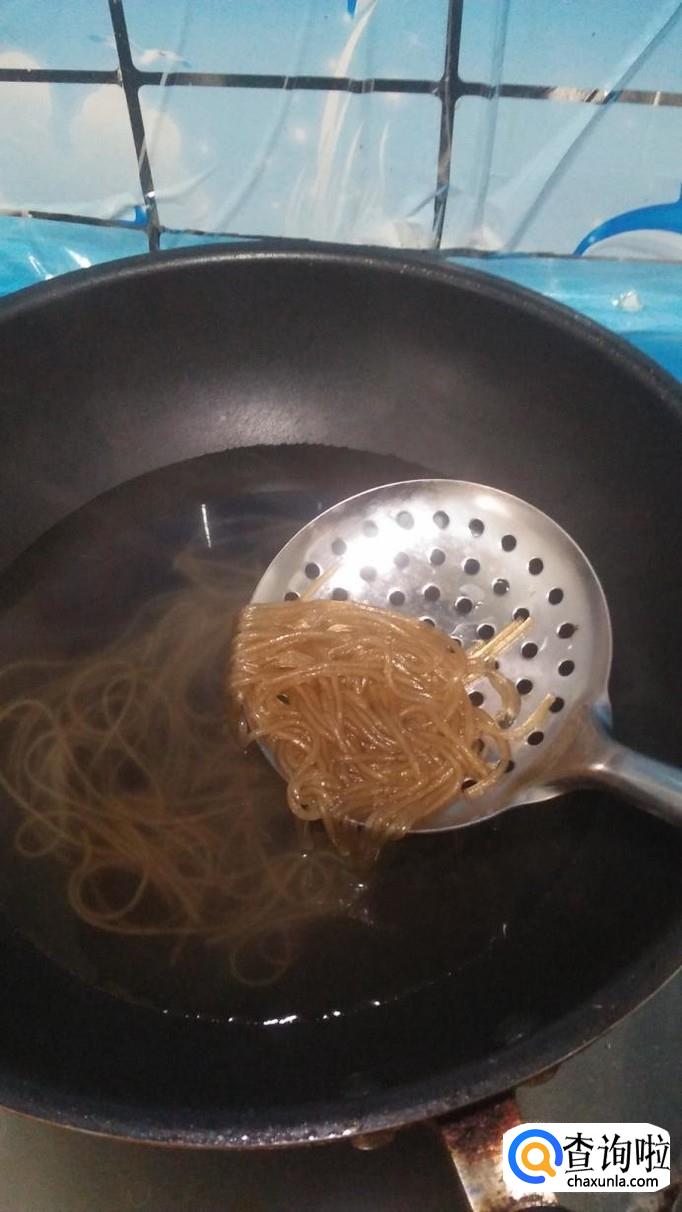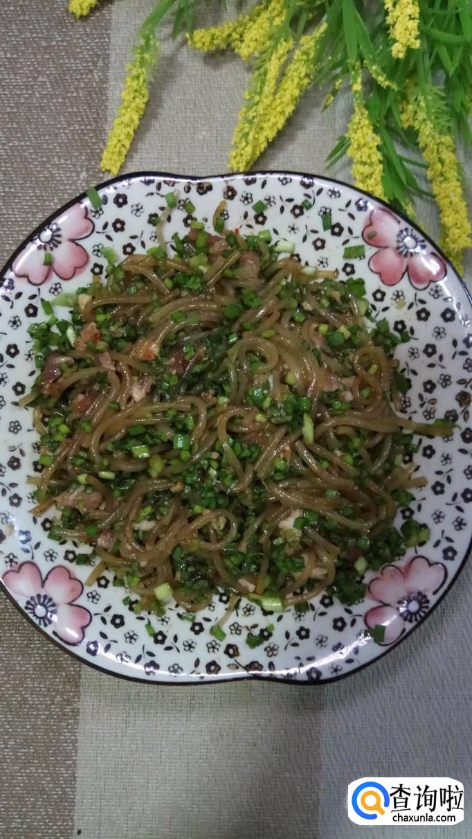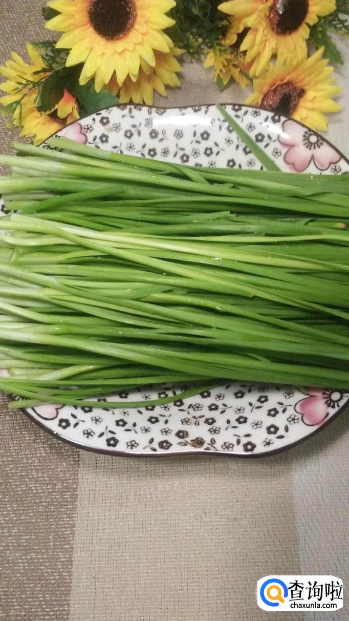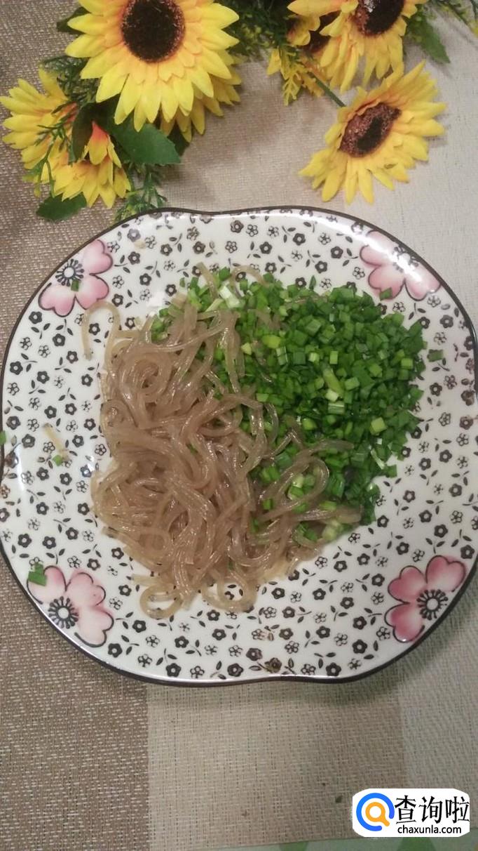 我们适量韭菜洗净后备用,再准备适量粉条放入锅中,煮至八成熟备用。