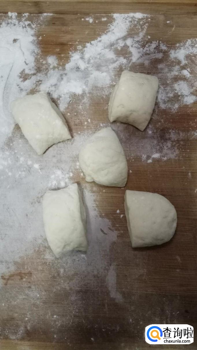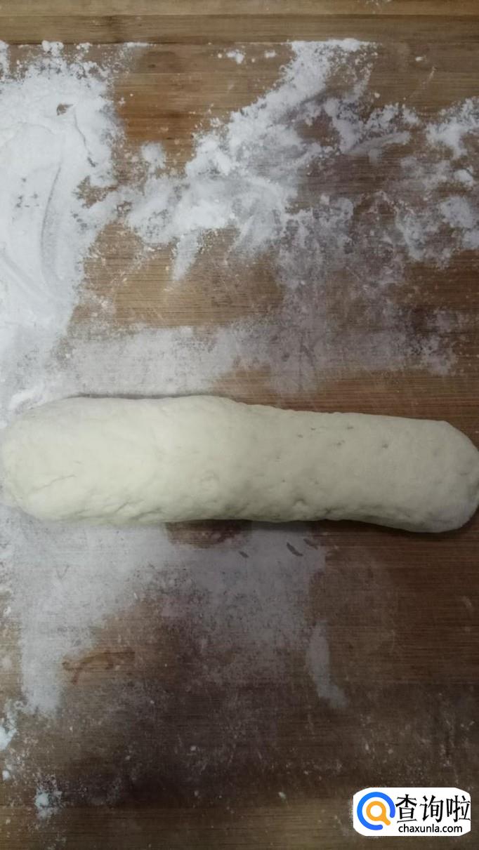 待面团发酵至两倍大,用手揉一下,搓成长条,分成小剂子。