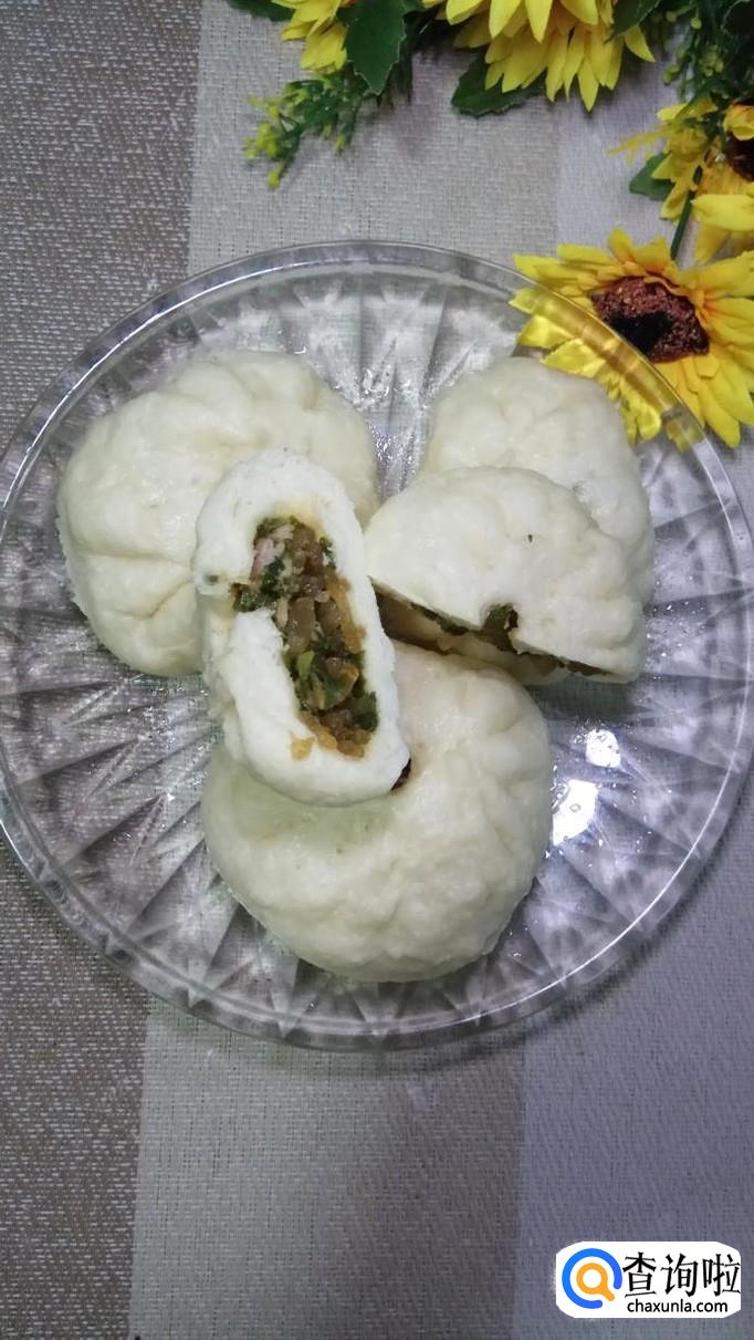 面粉适量,酵母粉适量,韭菜适量,蠢糖适量,五花肉适量,盐适量,鸡精适量,五香粉适量,生抽适量,老抽适量,料酒适量,香油适量。