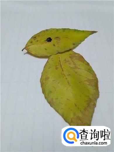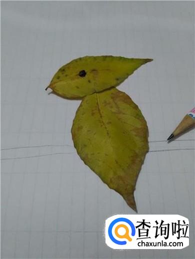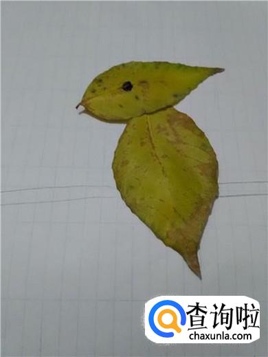 再将一片小叶子横着粘在身体的上方,当做小鸟的头部。