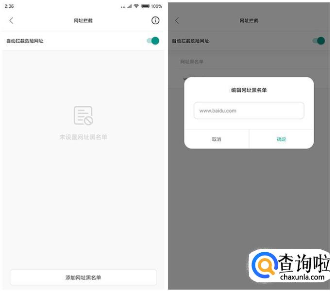 下面还有一项网址拦截的功能,添加网址黑名单,防止一些恶意网站影响孩子的身心健康或者收到欺诈。但是,由于系统原因,网址黑名单只能在被守护端的系统浏览器中生效。如果担心第三方浏览器的恶意侵害,建议使用应用守护功能禁止第三方浏览器。