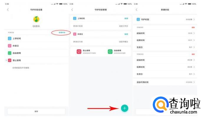 其他还有两个系统为我们设定好的可用时段,上学时间(或者法定工作日)和休息日(法定工作日),守护端可以根据被守护对象的不同来选择时段。当然,除此之外,点击右上角的管理时段,可以根据自身需求来重新定义这两个时段时间,或者点击右下角“+”添加,来自定义守护时段,自由度较大。