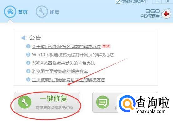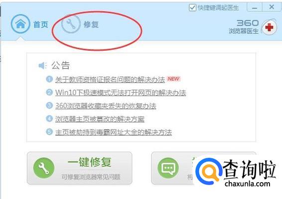 然后在360浏览器的下方点击【修复图标】,如下图所示: