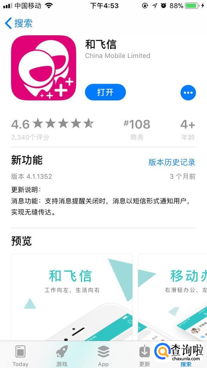 获取app:第一步就是获取要使用的app,叫做和飞信,在各大软件市场上都可以轻松获得,是免费的。如图所示。