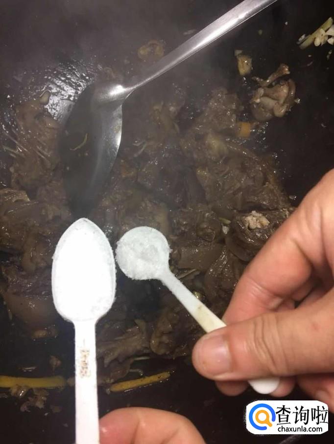 然后往锅中加入试验的盐巴和味精,翻炒一分钟,如下图所示。