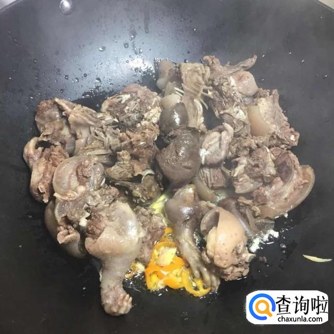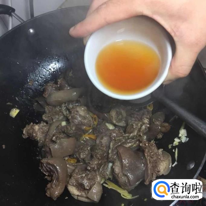 然后往锅中加入适量的老酒,翻炒三分钟,如下图所示。小编选择往锅中加入适量的老酒,是为了更好的去除竹鼠身上的腥味,大家在煮竹鼠的时候一定不要忘记加老酒。