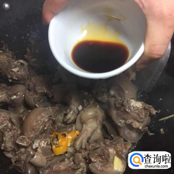 接着往锅中加入适量的酱油翻炒两分钟,如下图所示。