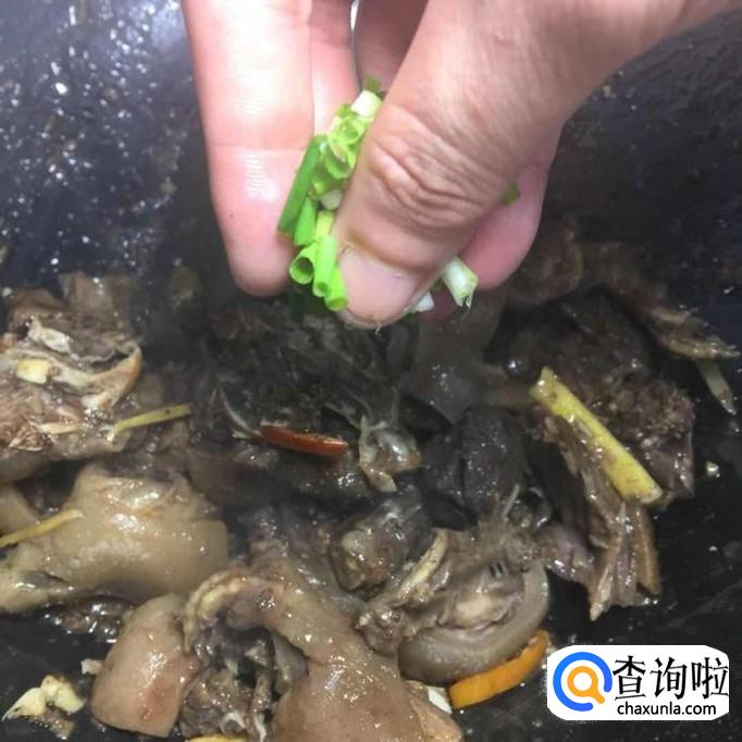 接着将香葱切成葱花,撒入锅中翻炒片刻就可以出锅了。