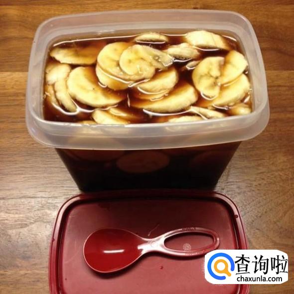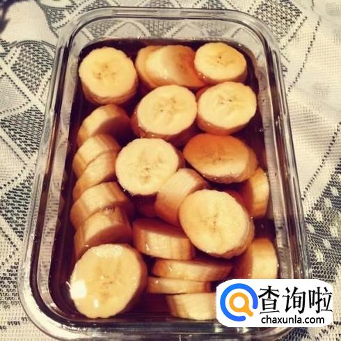 制作步骤:在瓶子中放入黑糖,再放切好的香蕉,倒最后入200c.c.水果醋,再混合。